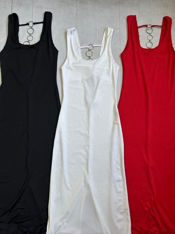 [7650] Vestido musculosa largo argollas espalda microfibra