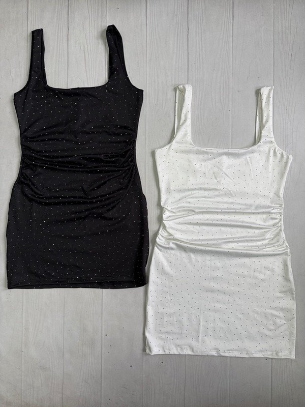 [7936] Vestido escote cuadrado trapeado ''Strass'' microfibra