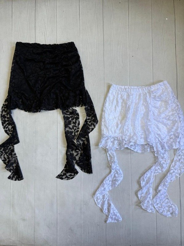 [4910] Short pollera tiro bajo fruncido lateral 3 volados sirena encaje