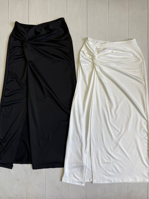 [4923] Pollera larga c/nudo tajo microfibra