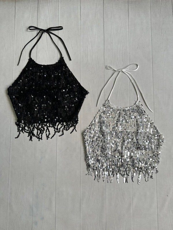 [5408] IMPORTADO Top halter p/atar lentejuela con flecos