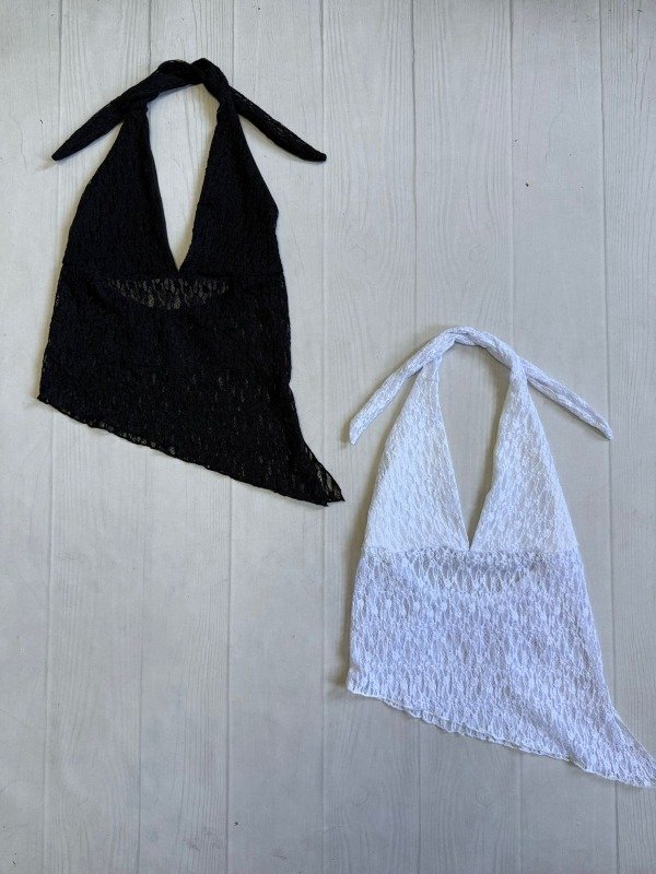 [5530] Top marilyn asimetrico c/tajo p/atar cuello encaje