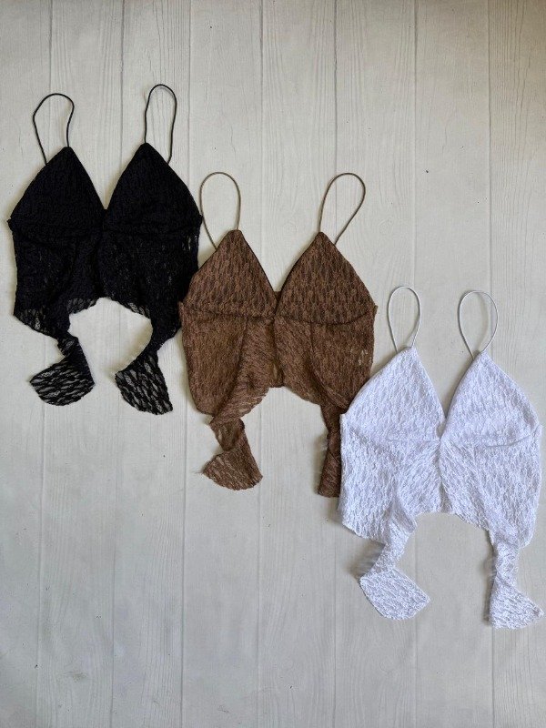 [5551] Top taza V cordon c/volados sirena encaje ''Cancun''