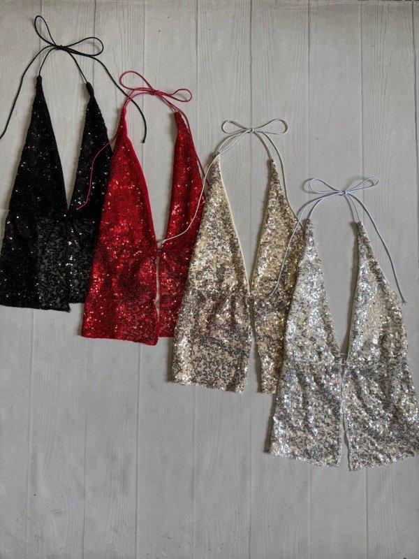 [5593] Top marilyn p/atar lentejuelas vivorita