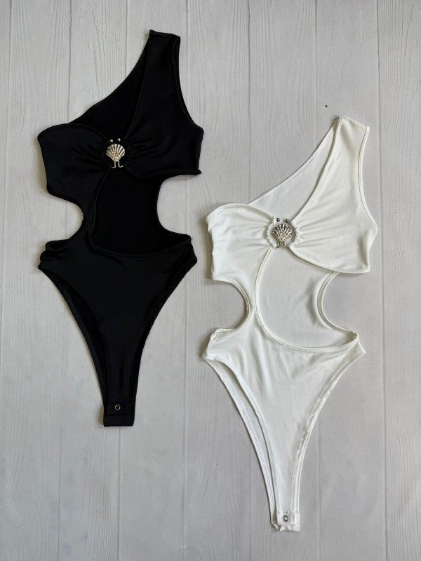 [6846] Body 1 hombro cut out cintura ''Viera'' microfibra