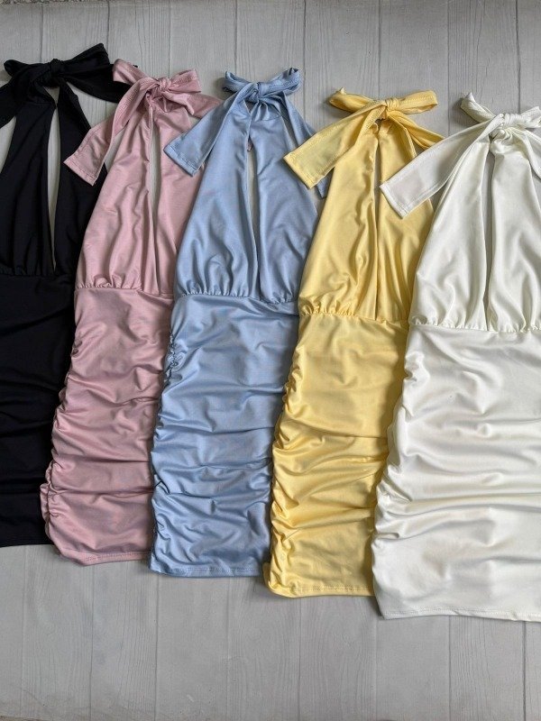 [7819] Vestido trapeado marilyn p/atar cuello microfibra