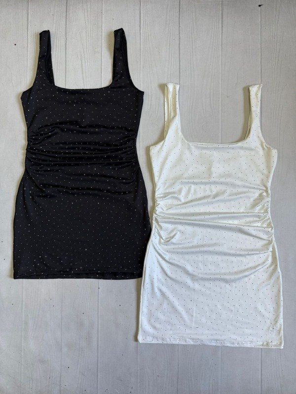 [7936] Vestido escote cuadrado trapeado ''Strass'' microfibra